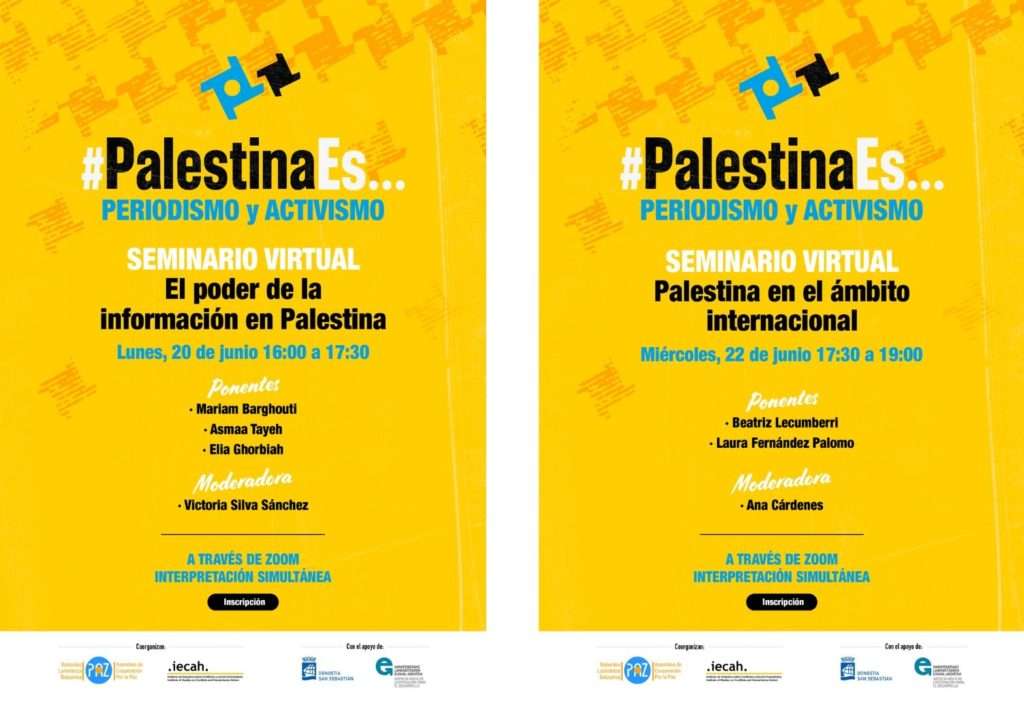 Asamblea de cooperación por la Paz (ACPP), en coordinación con el Instituto de Estudios sobre Conflictos y Acción Humanitaria (IECAH), y con la colaboración de la Agencia Vasca de Cooperación para el Desarrollo y del Ayuntamiento de Donostia / San Sebastián celebran los próximos días 20 y 22 de junio #PalestinaEs..., un ciclo de 2 seminarios web que se centrarán en el análisis del poder de la información en Palestina y en el análisis de Palestina en el ámbito internacional.