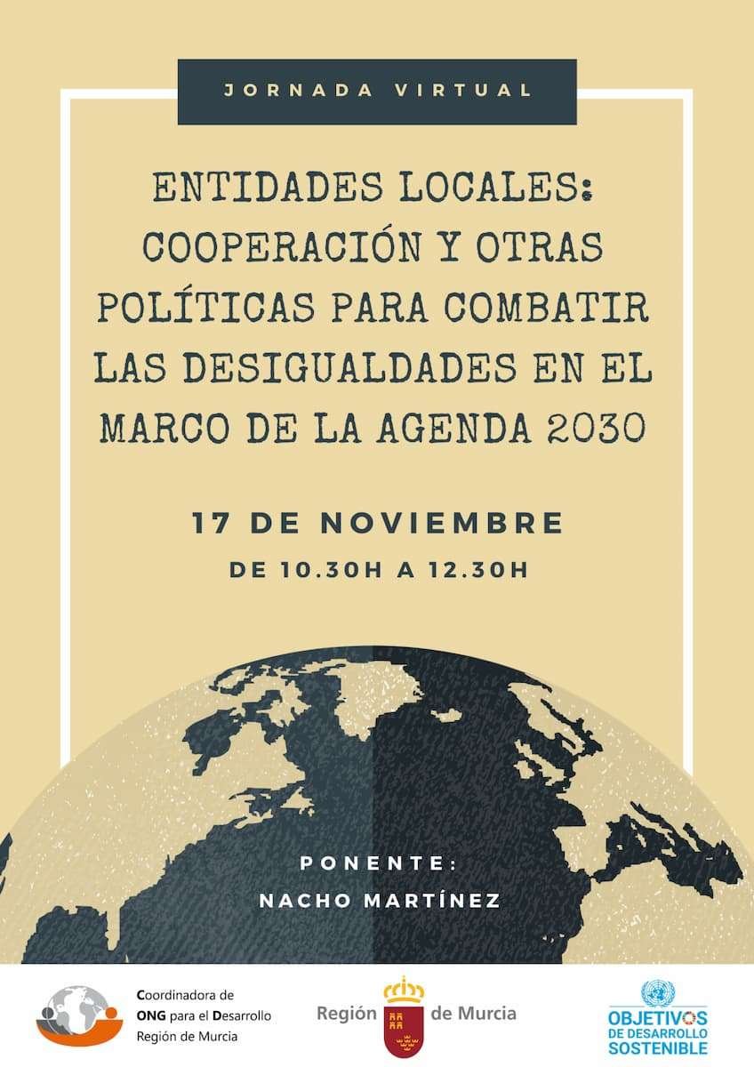 Esta jornada de la Coordinadora de ONGD de Murcia tiene por objetivo acercar la política de cooperación internacional a las Entidades Locales. A través del potencial de la Agenda 2030 se comentará la relevancia de las políticas públicas para combatir las desigualdades poniendo en el centro la política de cooperación internacional para el desarrollo.