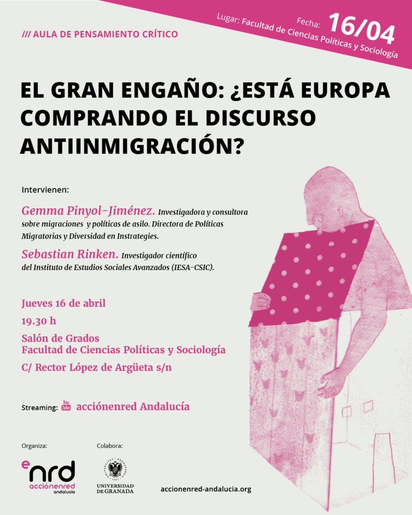 A estas y otras preguntas tratarán de dar respuesta en la próxima sesión del Aula de Pensamiento Crítico que ponen en marcha desde acciónenred Andalucía, donde conversarán con Gemma Pinyol-Jiménez y Sebastian Rinken, dos personas expertas y con largo recorrido en el estudio de las migraciones con las que tratarán de reflexionar sobre uno de los fenómenos que más preocupa en la sociedad actualmente.