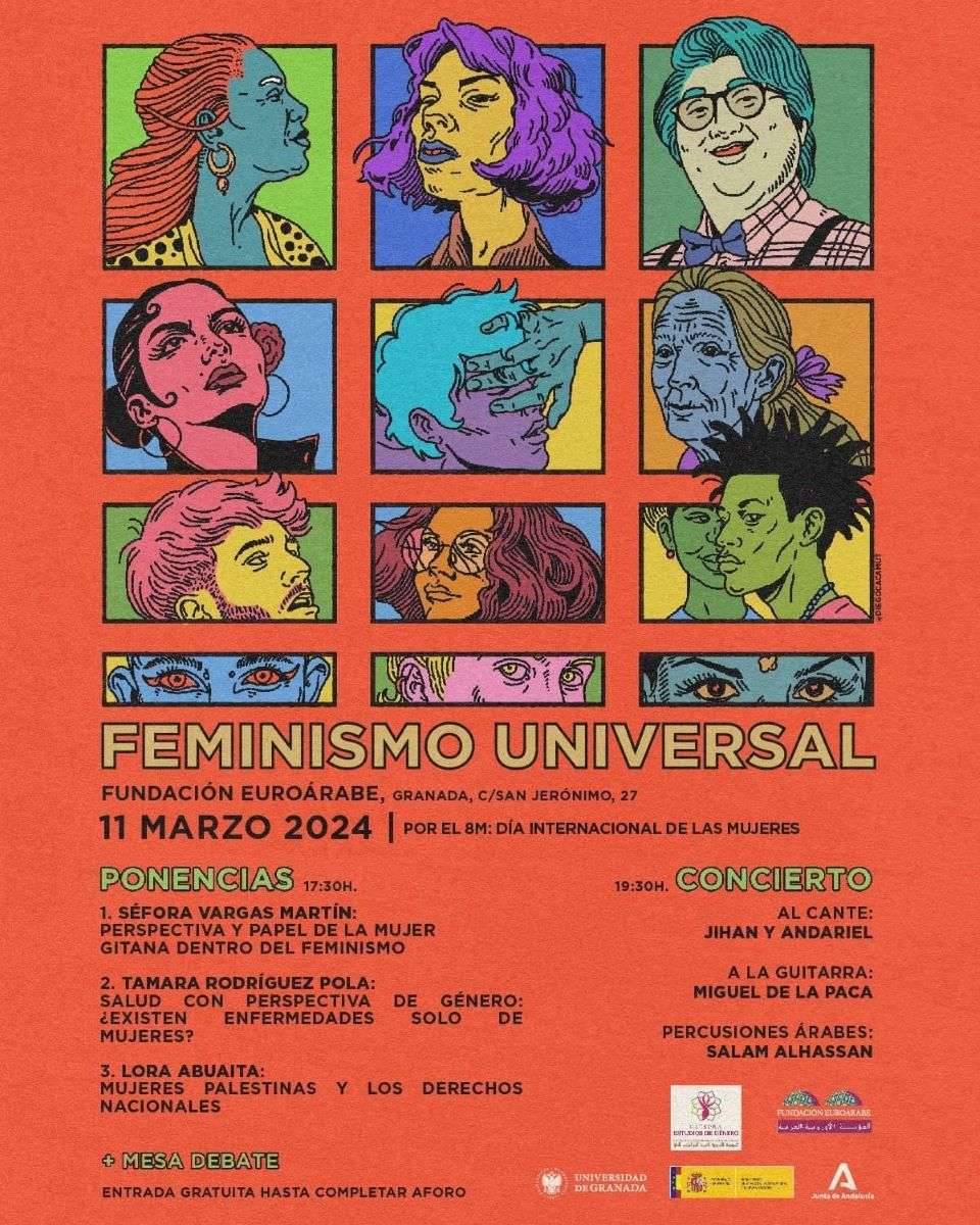 El lunes 11 de marzo, en el marco de los actos del Día de las Mujeres, se celebra en la Fundación Euroárabe el evento FEMINISMO UNIVERSAL, un espacio donde se darán cita ponencias, debates y música en torno al tema de la igualdad y la no discriminación.
