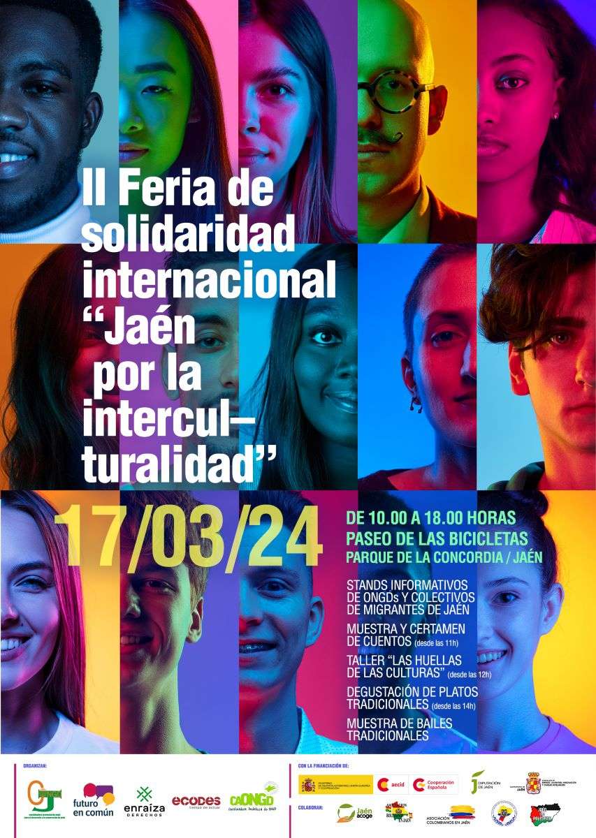 La Coordinadora de ONGD de la Provincia de Jaén celebra el próximo 17 de marzo la II Edición de la Feria de Solidaridad Internacional "Jaén por la Solidaridad" en el Paseo de las Bicicletas del Parque de la Concordia de Jaén. Stands informativos, cuentacuentos, talleres, gastronomía típica.