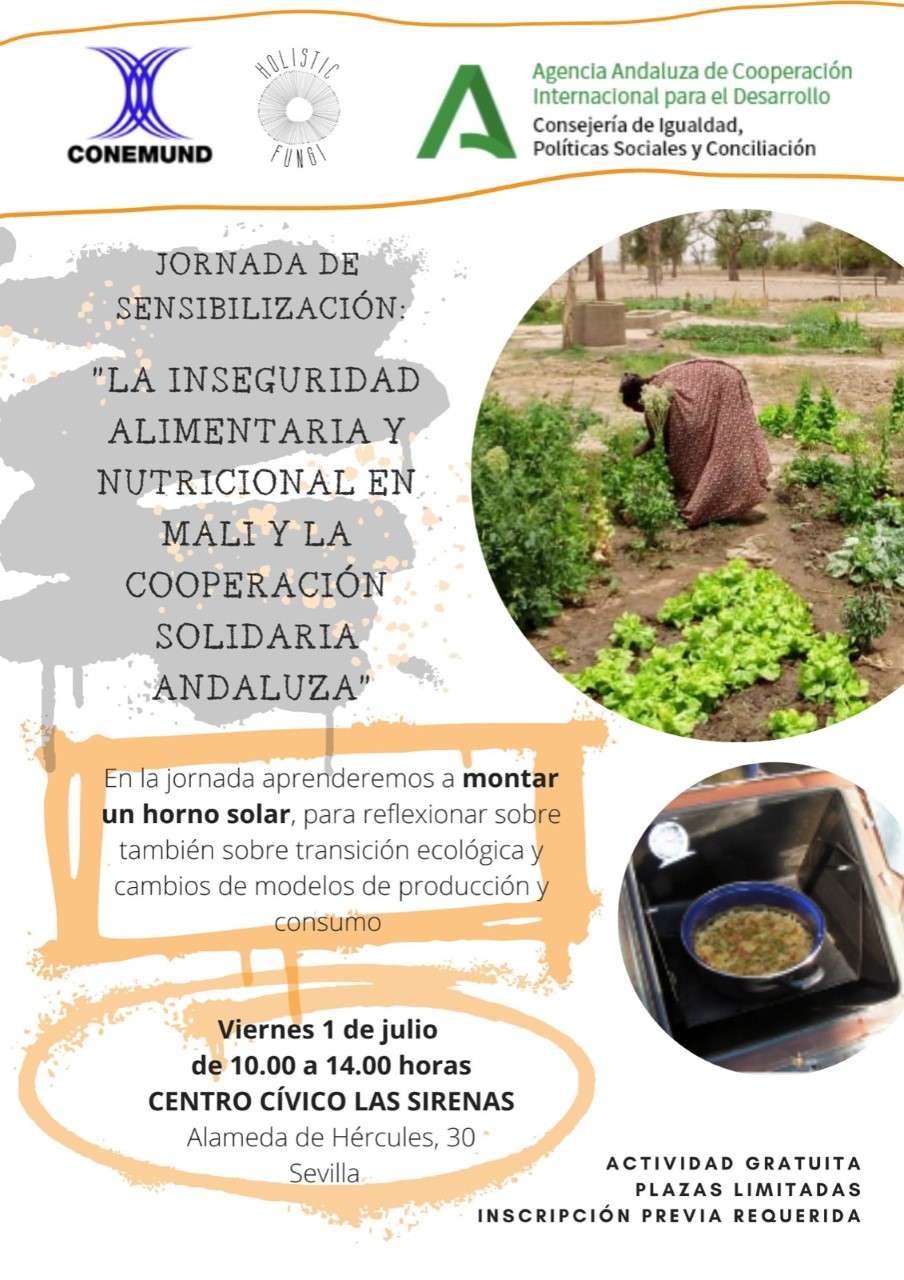 La jornada de Conemund La inseguridad alimentaria y nutricional en Mali y la cooperación solidaria andaluza se realizará viernes 1 de julio de 10 a 14 horas en el Centro Cívico Las Sirenas, en la calle Alameda de Hércules nº 30, Sevilla.
