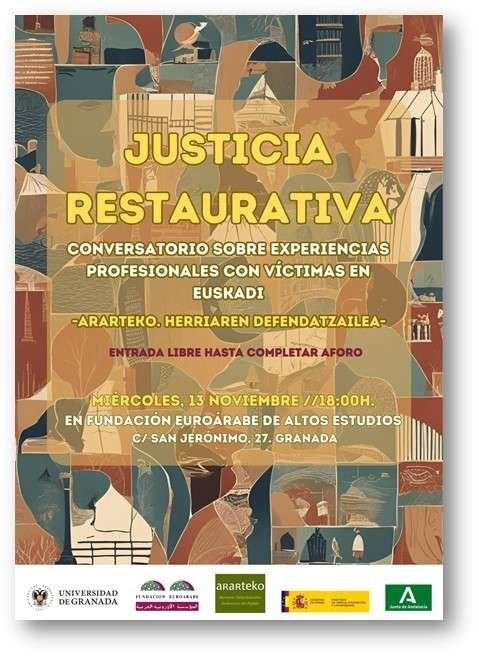 El acto, presentado por el secretario ejecutivo de la Fundación Euroárabe, Antonio Sánchez Ortega, contará con las intervenciones del coordinador del área de justicia del Ararteko, Roberto Moreno, quien explicará en profundidad qué es la Justicia Restaurativa y cuál es su metodología y Nahikari Borda, responsable técnica del área de personas en prisión, quien expondrá la apuesta estratégica y el impacto de la institución de la Defensoría del Pueblo del País Vasco.