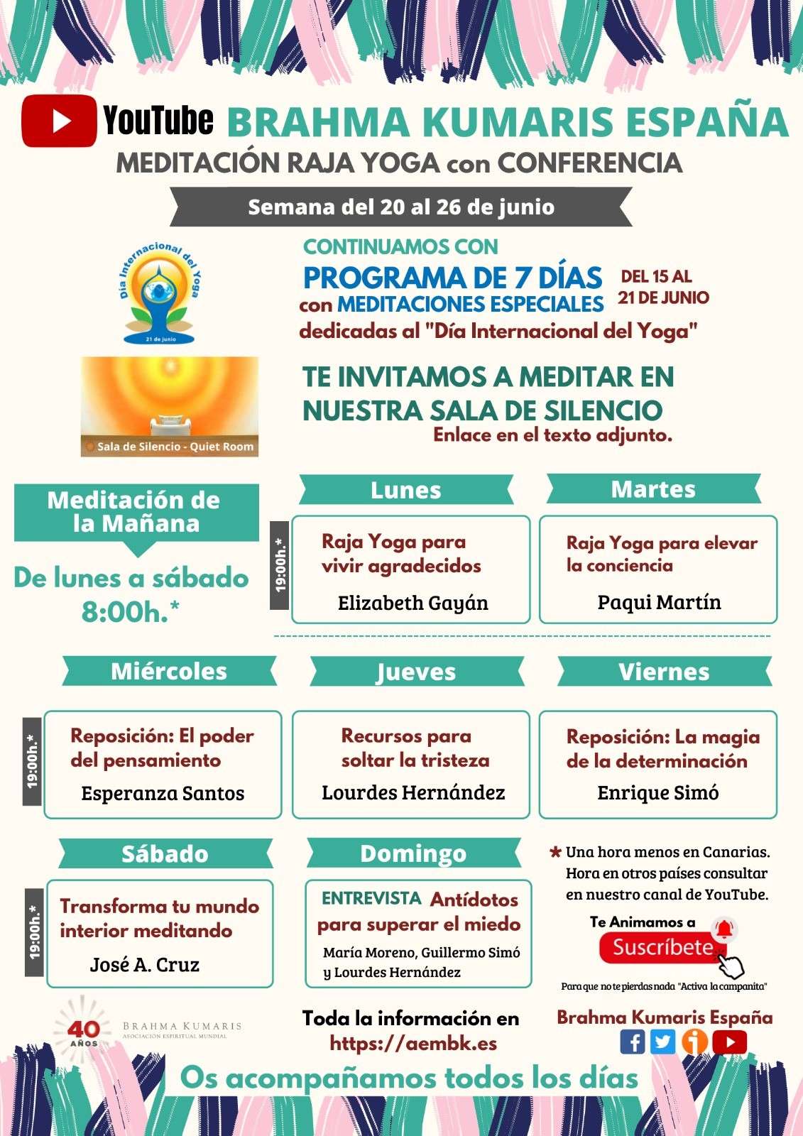 Brahma Kumaris continúa con el Programa Especial de 7 días el 20 y 21 de junio con meditaciones especiales dedicadas al Día Internacional de Yoga ![]()