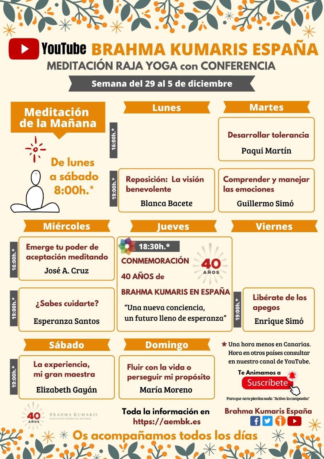 "Meditaciones Raja Yoga con conferencia" desde el Canal de YouTube Brahma Kumaris España.