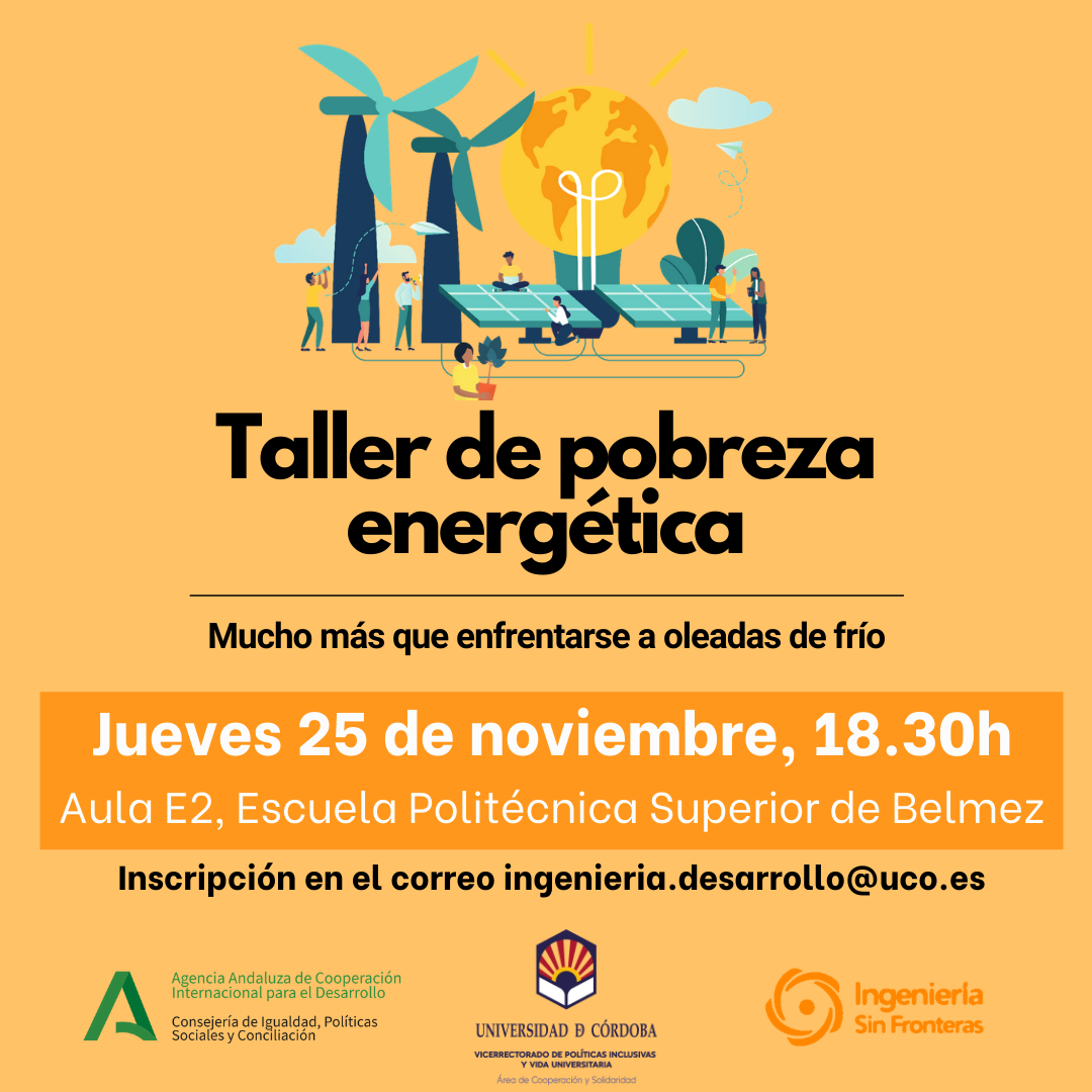 Si quieres conocer más sobre esta temática, Ingeniería Sin Fronteras Andalucía y el Área de Cooperación y Solidaridad de la Universidad de Córdoba impartiremos un taller sobre Pobreza energética el próximo jueves 25 de noviembre.