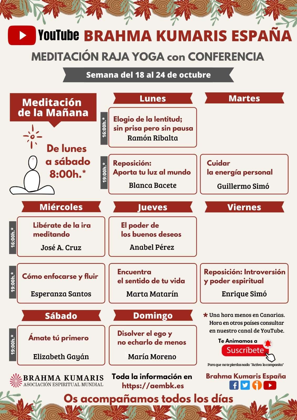 Brahma Kumaris nos invita a sus "Meditaciones Raja Yoga con conferencia" desde el Canal de YouTube Brahma Kumaris España desde donde os acompañarán todos los días.