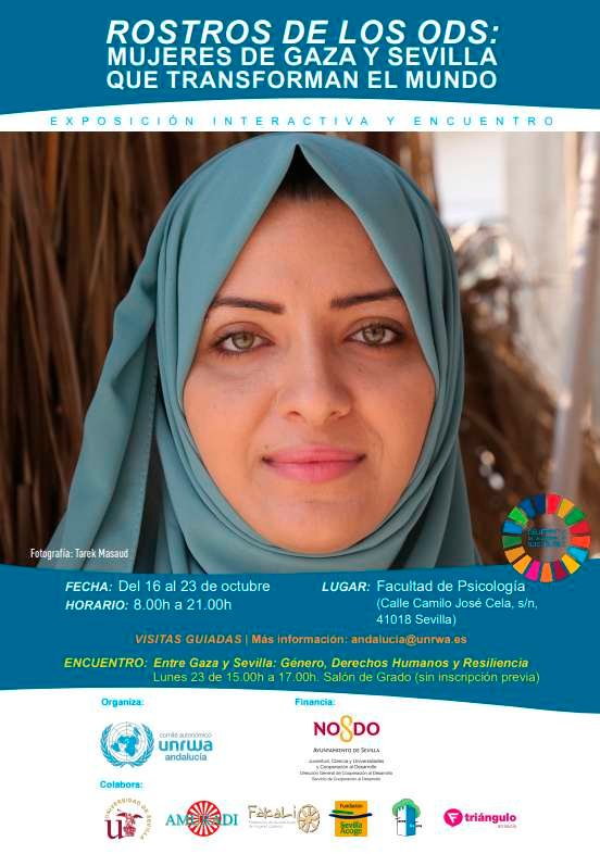 La exposición forma parte del proyecto que desarrolla UNRWA Andalucía “Rostros de los ODS. Fase II”, financiado por el Excmo. Ayuntamiento de Sevilla.