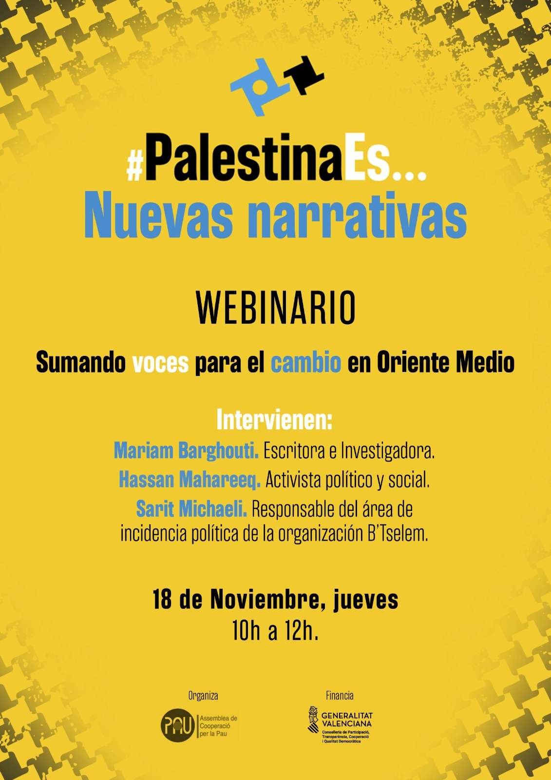 Asamblea de Cooperación por la Paz (ACPP) organiza el WEBINARIO #PalestinaEs...Nuevas narrativas. Sumando voces para el cambio en Oriente Medio.