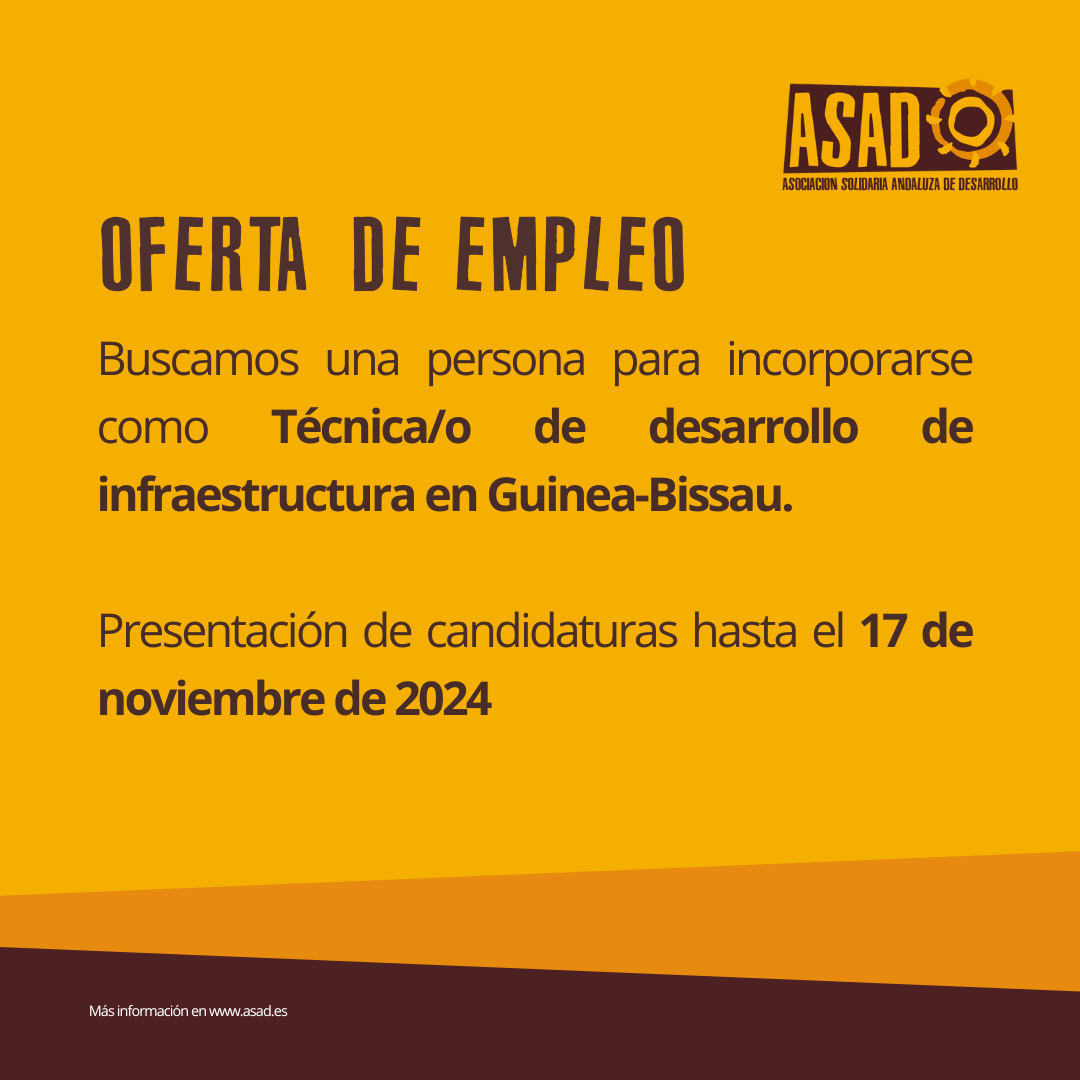 ASAD busca a una persona para incorporarse como Técnica/o de desarrollo de infraestructura en Guinea-Bissau.