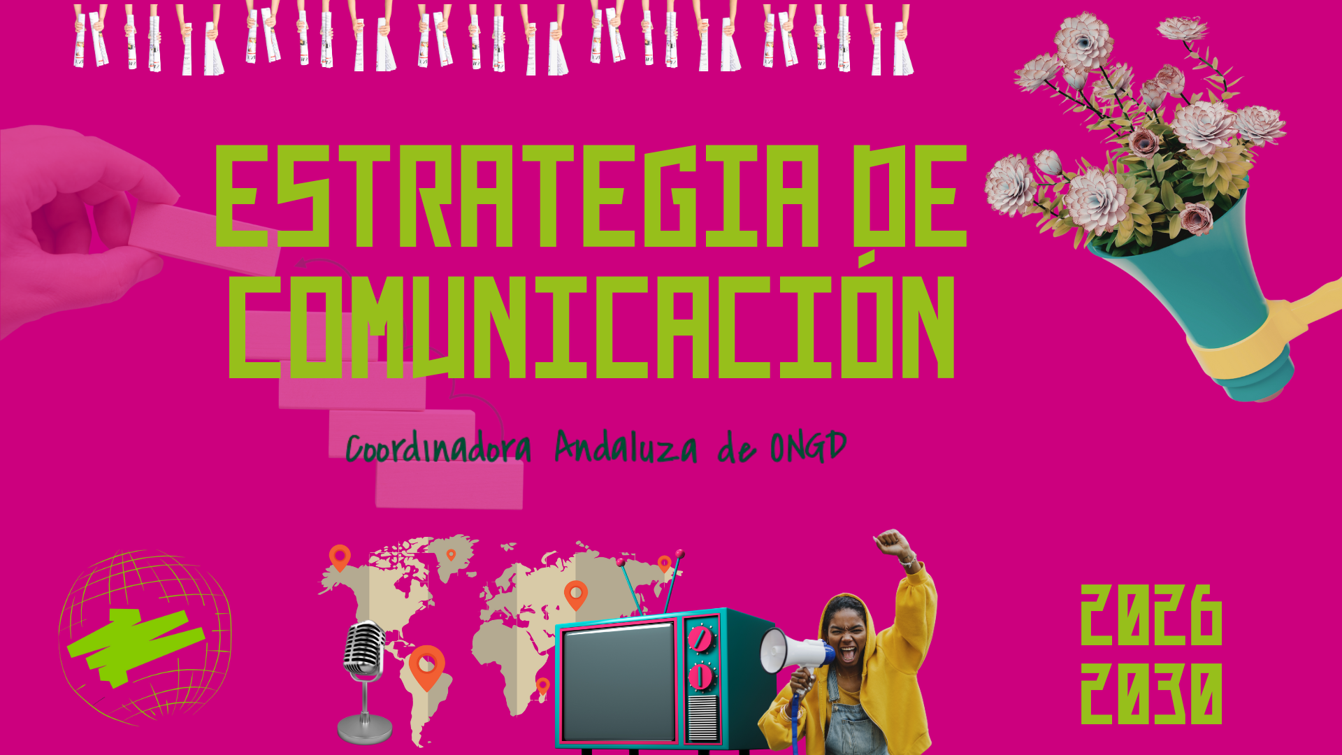 La Coordinadora Andaluza de ONGD cuenta desde ahora con dos nuevas guías para orientar su trabajo en comunicación. Por una parte, la Política de comunicación, un documento marco para enfocar esta labor hacia una comunicación transformadora. Y, desde una perspectiva práctica, la Estrategia de comunicación 2026-2030, que marca entre otras cuestiones los objetivos, públicos, herramientas y acciones con las que intentaremos contribuir a la justicia social global, la participación democrática y la transformación estructural.