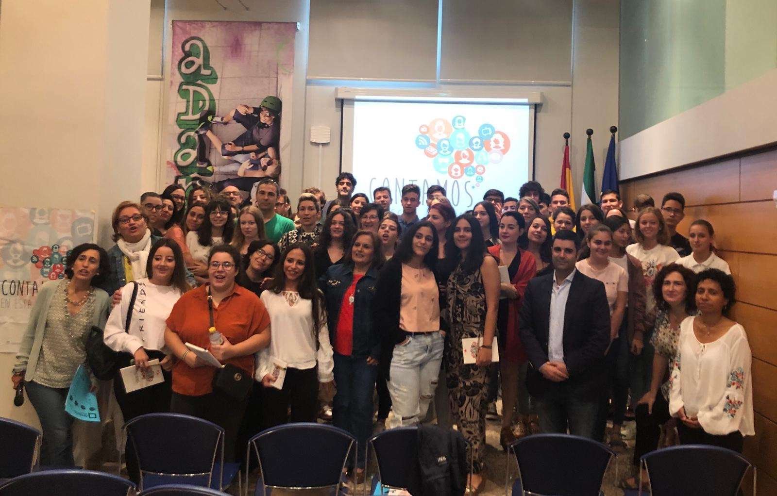 (Córdoba, 7 de octubre de 2019).- “Experiencias emocionantes”, “Aprender a comunicarme”, “Red de contacto para seguir trabajando en el activismo”, "Un pasito más de aprendizaje y la satisfacción de haberlo compartido con personas estupendas", "Un encuentro muy divertido que me ha dado más ganas e ilusión para seguir trabajando para que los jóvenes tengamos nuestro espacio", "Nuevos conocimientos y ganas de cambiar el mundo". Son algunas reflexiones aportadas en la evaluación del encuentro juvenil “Contamos en esta historia”, celebrado el pasado viernes 4 de octubre en la sede del Instituto Andaluz de la Juventud y donde se dieron cita cerca de 70 jóvenes de la provincia de Córdoba de municipios como La Carlota, La Rambla, Puente Genil, Villa del Río y Pedro Abad, así como un grupo de estudiantes del IES Galileo Galilei de la capital cordobesa. Los jóvenes de los municipios están familiarizados con la creación de mensajes reivindicativos y el activismo en las redes sociales, tras su paso por los talleres formativos del proyecto “Contamos en esta historia”, organizados durante el pasado curso escolar especialmente en IES, pero también en espacios como Casas de la Juventud o en las sedes de las mismas asociaciones juveniles. Por fin se pusieron cara en un encuentro final de proyecto donde compartieron experiencias y aprendizajes, y sobre todo se formaron en comunicación con un alto componente reivindicativo. Durante la jornada se celebraron talleres simultáneos con la participación de la rapera Eskarnia y la youtuber Sara Lauper. Ambas explicaron sus modos, estilos y herramientas para transmitir mensajes transformadores y feministas e incluso hubo tiempo para la práctica de creación de letras de rap. Para los chavales los talleres sirvieron como inspiración y estímulo para seguir alzando sus voces. También participó la periodista del medio andaluz La Poderío, Antonia Ceballos, en un taller sobre lenguaje y publicidad sexista, pensado especialmente para periodistas y profesorado de los IES participantes en el proyecto.